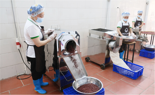 Nhà xưởng sản xuất các sản phẩm dinh dưỡng từ hạt hữu cơ tại thôn Yên Hà, xã Hải Bối, huyện Đông Anh, thành phố Hà Nội: Đạt tiêu chuẩn vệ sinh an toàn thực phẩm, tiêu chuẩn hữu cơ quốc tế của Mỹ (USDA), Châu Âu (EU) và Nhật Bản (JAS).